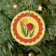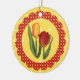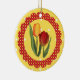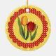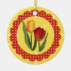 Dieses Tulips-Ornament zeigt meine digitalen Kunst Aquarelltulips mit einem roten, geschmolzenen Rahmen auf gelb mit weißen Polka-Punkten.