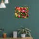 Poster mit einem Foto-Druck eines Feldes von hübschen bunten Tulpen. Passen Sie dieses Objekt an oder kaufen Sie, wie es ist. Bild