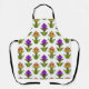 Diese Schürze hat ein Kunst-Deko-Design aus Diamanten, Dreiecken und Polygonen gemacht Tulpen in orange und lila mit grünen Stiele und Blätter.