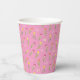 Tulpen und Schmetterlinge rosa Muster Papier Becher. Die Einrichtung besteht aus rosa, gelben und orangefarbenen Tulpen auf rosa Untergrund. Rosa und gelbe Schmetterlinge verfärben sich um die Tulpen herum und verstärken die fröhliche Ästhetik mit einer skurrilen Touch!