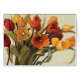 © Shirley Novak/wildes Apple. Ein Blumenstrauß der bunten Tulpen in den Schatten der Orange, des Gelbs und des Rotes. Ein elfenbeinfarbener Hintergrund schließt das Bild ab.