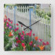 Tulpegartenweiß-Palisadenzaunquadratuhr Quadratische Wanduhr