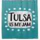 "Tulsa Is My Jam" ist ein lustiges Textdesign mit einer weißen Akzent-Form, umgeben von weißen, whimsikal strukturierten Punkten.