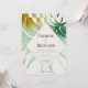 This beautiful tropical beach destination wedding invitation features a simple green-and-gold watercolor background of tropical palm foliage on the front and back. As well as bold, modern typography and delicate gold details within a diamond-shaped frame. This invitation is named Tulum because it's perfect for a beach destination or summer wedding. Please check out the related wedding stationery.
