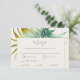 This tropical beach wedding RSVP enclosure card features a beautiful green-and-gold watercolor palm foliage background. As well as elegant text and modern script typography. This wedding suite is named after Tulum Mexico because it's perfect for a beach destination or summer wedding.