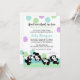 Ein hübscher schwarz-weißer Panda mit Babyduscheinladung, "Kopf über Heels in Liebe" mit Baby auf dem Weg Design. Farbenfrohe und unterhaltsame geschlechtsneutrale Babydusche in aquamarin, Limon und lila.