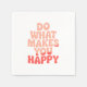 Mit dieser fröhlichen und aufregenden Serviette mit dem inspirierend Satz "Do What Maes You Happy" in lebhaften, farbenfrohen Schriftzeichen lassen Sie den Tag eines Menschen erstrahlen. Ob Sie es einem Freund geben oder es als tägliche Erinnerung nutzen, um mit Freundlichkeit zu führen, dieses Design liefert eine Botschaft der Ermutigung, Freude und guten Gesinnung.