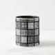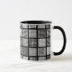 Kaffee/Getränk-Tasse mit stilvollem Polkapunkt-Patchworkmuster im Grau, Schwarzweiss.