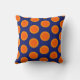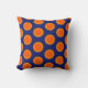 Helles dunkelblaues und orange Punktartkissen. Entworfen durch Sarah Trett. Würde in einer Küche oder in einem Aufenthaltsraum groß schauen.
