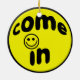 Auf einer Seite ein süßer glücklicher Gesichtsentwurf in glänzendem Gelbem und schwarz, das HEREINGEKOMMEN sagt! Es ist Ihr jugendlich benutzt nie diese Seite, wie die andere Seite, in ominösem Rotem wahrscheinlicher und schwarz mit den Schädeln, sagt BEHALTEN HERAUS.