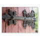 Alternde hölzerne Kirchentür mit verziertem Eisen lagern schwenkbar.