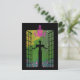 Basierend auf einem Vintagen Design. Urheberrecht. Das ist ein sehr vielseitiges Design. Sie können dieses Design auf jede Größe, jeden Stil oder jedes Papier anwenden. Von Bachelorette und Hauswärme bis 16 . Geburtstag, Quinceanera. Offene schwarze französische Türen mit rosa, grünen und gelben Blumen / Blumen. Mädchen Silhouette gekleidet an einem extravaganten Party, das zu ihrer Terrasse oder zu ihrem Garten geht. Jugendstil.