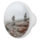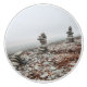 Türgriff, Photofelsen in Gleichgewicht, inukshuk auf einem Strand im Nebel. Titel: „Gleichgewicht“, Alma, N.B., Kanada. Marie-Ève LaBadie Fotograf