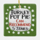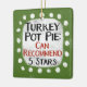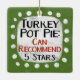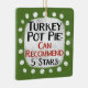 Ein lustiges typografisches Design, das "Turkey Pot Pie: Can Recommend, 5 Stars" sagt. Es ist schwarz und rot auf einem weißen Rechteck mit funky, spielerisch weißen Punkten, die ihn umgeben, alles auf grünem Hintergrund.