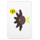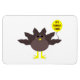 Dieser phantastische Magnet zeichnet sich durch einen lustigen Cartoon eines Truthühners mit großen schwarzen Augen, einem kleinen gelben Schnabel und Schwanz-Federn aus. Die Füße stehen in entgegengesetzter Richtung, wodurch der Truthahn unbeholfen aussieht. Der Truthahn hält einen gelben Ballon mit einer Meldung im Inneren, in der steht: "Es ist Zeit für den Truthahn". Das ist ein lustiges Erntedank Party Design.
