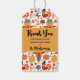 Geschenke Tags mit einem saisonalen Fall Muster, Mais, Pilze und Flora. Zusammen mit Truthühnern und Skarecrows, um die Tradition des Erntedanks zu ehren.