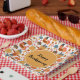 Papiere Teller mit saisonalen Fallmuster, Mais, Pilze und Flora. Zusammen mit Truthühnern und Skarecrows, um die Tradition des Erntedanks zu ehren.