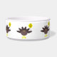 Dieses phantastische Haustierschüssel hat einen lustigen Cartoon eines Truthahns mit großen schwarzen Augen, einen kleinen gelben Schnabel und Schwanz Federn klebrig. Die Füße stehen in entgegengesetzter Richtung, wodurch der Truthahn unbeholfen aussieht. Der Truthahn hält einen gelben Ballon mit einer Meldung im Inneren, in der steht: "Es ist Zeit für den Truthahn". Das ist ein lustiges Erntedank Party Design.