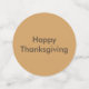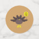 Dieser phantastische Tischkonfetti bietet einen lustigen Cartoon eines Truthahns mit großen schwarzen Augen, einem kleinen gelben Schnabel und Schwanz Federn, die aufhängen. Die Füße stehen in entgegengesetzter Richtung, wodurch der Truthahn unbeholfen aussieht. Der Truthahn hält einen gelben Ballon mit einer Meldung im Inneren, in der steht: "Es ist Zeit für den Truthahn". Das ist ein lustiges Erntedank Party Design.