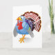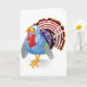 Turkey standing proud. This is very colorful cartoon stil turkey. It has an amusing expression on face and is showing all its feathers and colors. This turkey design looks great on these greeting cards