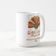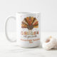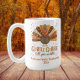Feiern Sie Erntedank mit Lachen und Stil mit dieser Gobble Gobble bis Wobble Tasse, mit einem fröhlichen Patchwork Truthahn und spielerischen Herbstfarben. Personalisiert mit Ihrem Familiennamen und dem Jahr, ist diese festliche Tasse ein idealer Ort für Ansammlungen im Urlaub. Ideal, um Kaffee, Tee oder Kakao zu trinken und dabei die Traditionen des Truthahns zu genießen, ist es ein lustiges und nachdenkliches Geschenk für Familie, Freunde oder Urlauber.