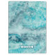 Eine Türkis-Farbe gießen abstrakte Kunst mit Acrylflüssigkeit, um einen atemberaubenden und schönen kreativen Beschaffenheitsentwurf zu machen, der mit den Farbenwellen und dem Strudelmuster gemarmort schaut. Bereiten Sie vor, um mit Ihrem Namen oder Monogramm personalisiert zu sein. Wenn Sie nicht wollen, um sie persönlich zu machen, können Sie den Namen löschen. Türkis, Aqua und aquamarine Grüntöne/Blau werden in diesem dekorativen, modernen, künstlerischen Unisexfarbentwurf gesehen.