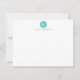 Türkis Aqua Script Monogram Circle Moderne Girl Note Card