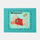 Zeigen Sie Ihrem Hund Liebe mit dieser kuscheligen Begrüßungstüre für Ihre Zuhause oder Arbeit. Das Wort "willkommen" kann geändert werden, um mit einem Namen zu personalisieren. Dieser Teppich ist mit einem knalligen, beigen Champagner-farbenen Scottie Terrier ausgestattet, der ein rotes T-Shirt mit türkisfarbenem aquamarinen Trimm trägt. Ein gelber und roter Ball ist neben ihm oder ihr. Der Hintergrund ist ein aquamariner türkisfarbener Streifen mit einem aquamarinen Rahmen und schwarzen Pfotendrucken. Innerhalb der aquamarinen Grenze befindet sich eine serpentine Liniengrenze. Zwei gelbe Blumen sind über dem Hund. Dieser niedliche, kuschelige und trendige Hund ist eine originelle Kunstkunst von Phyllis Dobbs und wird das Herz eines Hundeliebhabers schmelzen. Diese Scottie Door Matte ist komplett anpassbar, um es zu Ihrem eigenen zu machen!