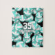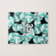 Dieses niedliche Volleyball-Puzzle für Mädchen zeichnet sich durch ein vielfältiges, türkisfarbenes und weißes Volleyballmuster aus, das auf schwarzem Hintergrund gedreht wird - die nicht weißen Paneele sind mit einem hellen türkisblauen Akzent mit einem künstlerischen, gürtelhaften, blumigen Muster versehen - mit Volleyballspielername und Trikotnummer - von katz_d_zynes