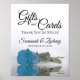 Dieses schöne Schild lasse Ihren Hochzeitsgästen zu wissen, wo sie ihre Geschenke und Karten verlassen haben. Das elegante und elegante Design mit einem Single in blau, azurblau oder türkisfarben, lang gestempelte Rose, die in einem Wasserbecken reflektiert oder spiegelt. Es gibt eine kurze Danksagung zusammen mit den Namen des Paares.