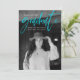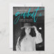 Moderne Abschluss-Ankündigungskarte mit dem beliebten Foto Ihres Absolventen auf der Vorderseite mit "Graduate" in türkisfarbener Handschrift. Personalisieren Sie die Vorderseite der Ankündigung, indem Sie den Namen des Absolventen, den Schulnamen und das Abschluss Jahr. Die trendige Ankündigung des Abschlusses kehrt zurück, um weitere 3 Fotos mit Platz für Text wie Zukunftspläne, Abschluss Details, Party Details, etc. anzuzeigen. Die 4 Foto Abschluss Ankündigung ist perfekt für Absolventen der Highschool und der Uni.