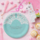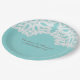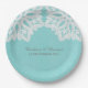 Einfache und raffinierte Elegant Lace Wedding Paper Teller mit einem weißen Spitzenmotiv auf einem helltürkisfarbenen Imitat Vintag Papier Hintergrund. Diese klassischen und stilvollen Teller sind perfekt für eine rustikale Hochzeit. Einfach an Ihre Hochzeitsdetails anpassen. Klicken Sie auf "Anpassen", um weitere Personalisierungsoptionen zu erhalten.