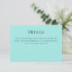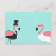 Eine Hochzeitskarte in Türkis mit schwarzem Text und eine Flamingo Braut und Bräutigam auf der Rückseite. Legen Sie Ihre Daten auf diese Karte, fügen Sie sie in Ihren Warenkorb und senden Sie sie dann an Ihre Gäste. Türkis Flamingo Details Einweihung Karte | ©Melissa Patton - Designer/Illustrator