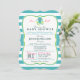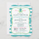 Es ist ein Mädchen! Elegante mädchenhafte türkisblaue Oktopus Babydusche lädt mit Vintagem formellen Look zu vertikalen Streifen ein. Ideal für Mädchen nautische Ozeane Wasserleben Thema Babyduschen. Einladung zur runden Klammer.