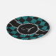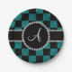 Türkis-Glitter-Schachbrett des Monogramms Pappteller