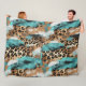 Türkis Gold Black Leopard Fleecedecke