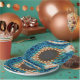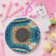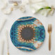 Dekoratives ethnisches asymmetrisches Muster im Südwesten des Indianerstamms in den Farbtönen Türkis, Grün und Erden von Gold und Braun.