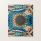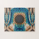 Dekoratives ethnisches asymmetrisches Muster im Südwesten des Indianerstamms in den Farbtönen Türkis, Grün und Erden von Gold und Braun.