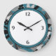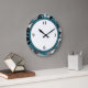 Türkis Grau Schwarz & Weiß Moderne Blumengrenze Große Wanduhr