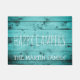 Türkis, rustikales hölzernes Dekorgeschenk im Freienfür rvers, pensionierte Paare, Wanderer, Lagerbewohner und Naturliebhaber ist dieser hölzerne Entwurf des personalisierten Türkises, der hölzernen Planken der Scheune oder hölzernen Brettern des aquamarinen Strandes ähnelt, die verwittert geworden sind. Fußmatte las glückliche Menschen mit einer Schablone für das Addieren des Familiennamens unten im Weiß, handgeschriebene schauende Buchstaben. Großes Ruhestandsgeschenk, auch. Seien Sie zu Hause vor einem RV, einem gemütlichen Blockhaus oder einem Sommerstrandhaus recht.