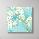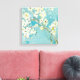 Weiße, zeitgenössische Blüten blühen auf Blau. Kellie Day