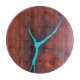 Atemberaubend türkisfarbenes und Mesziumholz-Glasschneidebrett mit einem Durchmesser von 30 cm.  Perfekt für jede Gelegenheit für Mann oder Frau.