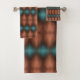 Stilvolles und dekoratives Set mit Designer-Badetuch mit Schokolade, Kupferbraun und Türkis.
