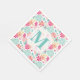 Türkis Pink Painted Floral Monogram Napkins Serviette