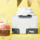 Aqua blauer Retro-Fernseher auf gesprenkeltem Hintergrund mit fröhlichem Geburtstagstext auf dem Bildschirm.