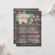 Türkis, rosa Blume; rustikales Brautparty aus Holz Einladung