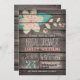 Brautdusche mit rosa und türkisfarbener Blume, Blumendesign auf rustikalem Vintagen Western, Stallholz, Holzboden mit eleganten, altmodischen Schriftart. Ideal für Land, Bauernhof, Bauernhof, Grill Thema Brautpartys / Polterabende! Diese niedliche, lustige Einladung ist das ganze Jahr über für Frühling, Sommer, Herbst oder Winter-Brautpartys!