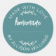 Türkis Mit Liebe Gemacht Selbstgemacht Aufkleber mit sauberer weißer Typografie und einem handgeschriebenen Schriftzug-Design. Perfekt zum Versiegeln von Backwaren, Marmeladengläsern, Keksen, Brot, Pie-Schachteln, Verpackungen für Kleinunternehmen, Partygeschenken und handgefertigten Geschenken. Enthält eine anpassbare Namenszeile, ideal für Heimköche, Kreative und kleine Marken, die einen warmen, persönlichen letzten Schliff suchen. Einfach personalisieren mit Ihrem Namen oder Shop-Details.