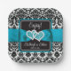 Türkis, Schwarz-Damast-Liebe Hört Hochzeit Pappteller
