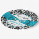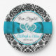 Türkis, Schwarz-Damast-Liebe Hört Hochzeit Pappteller